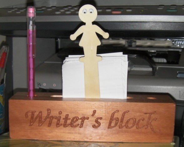 At my local kick-off party (go see pics at a fello WriMo’s blog), I met some of my fellow writers in the Pretoria (South Africa) region. Some were very vocal, some were very quiet and some were those gems of people who actually went to a lot of effort to welcome old and new participants. I now have a Writer’s Block sitting on my desk (okay, fine, it’s sitting on my calligraphy box on my desk), two plot bunnies (a blue origami bunny I folded myself and a plush bunny I actually won), my inner editor – soon to be incarcerated – and a tiny, noisy stress ball.